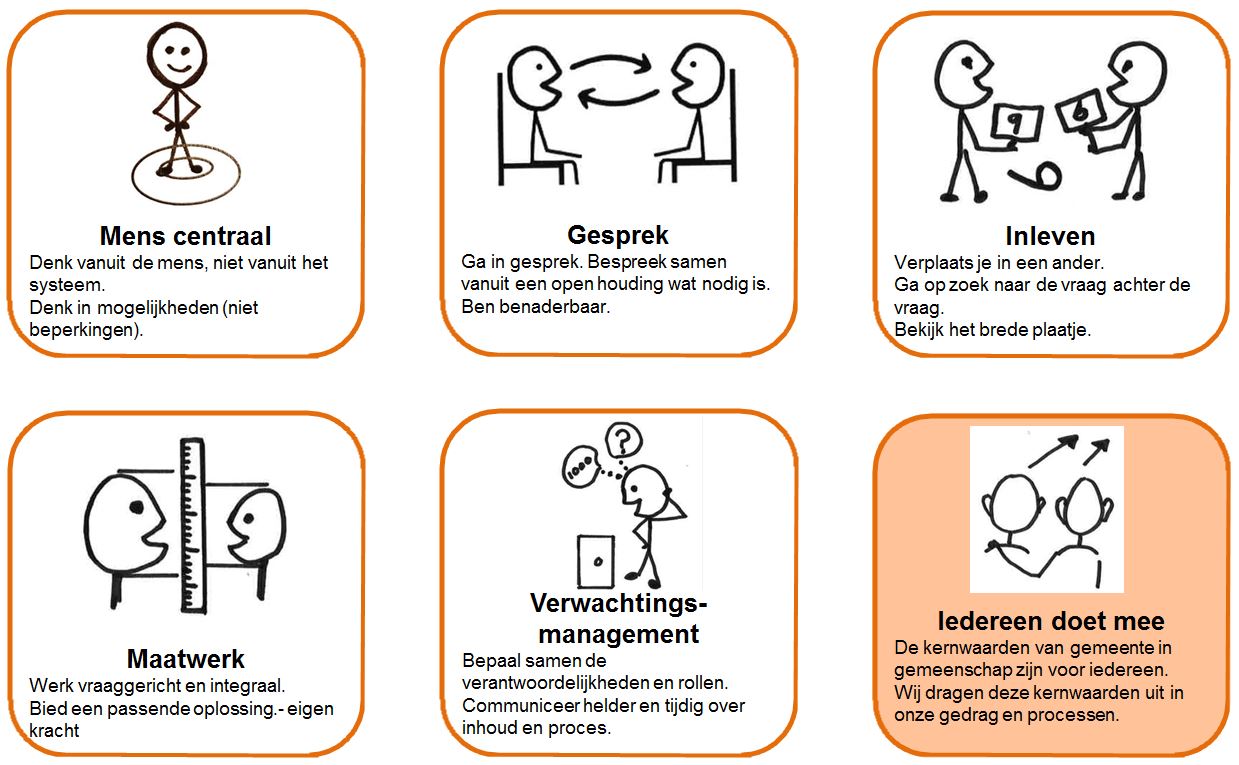 Voor alle medewerkers van de gemeente Beesel gelden de zes kenwaarden van een Gemeente in Gemeenschap: Mens centraal, Ga in Gesprek, Inleven, Maatwerk, Verwachtingsmanagement en Iedereen doet mee. Deze kernwaarden passen we toe in ons dagelijks werk; zowel in onze processen als in onze houding en ons gedrag.